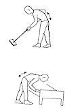 Statické zaťaženie pri žehlení: pri žehlení je dôležité voľba správnej výšky žehliacej dosky alebo stola, ktorá potom predurčuje možnosť práce s chránenou pozíciou driekovej a hrudnej chrbtice.